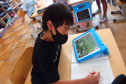 タブレットで写真を撮ってきたホウセンカ(たぶん?)を日記にまとめています。