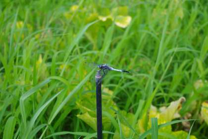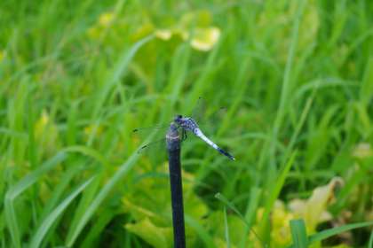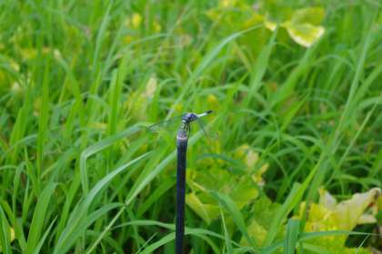 畑に水やり、草取りに行ったら、きれいなシオカラトンボに出会いました。