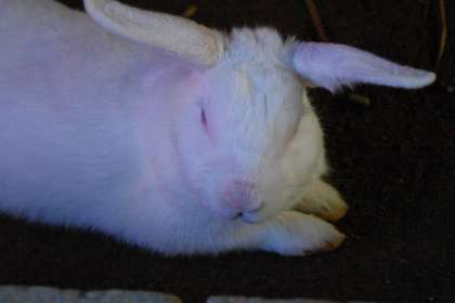 ひんやりした土の上でくつろぐ今日のわたまるくん。