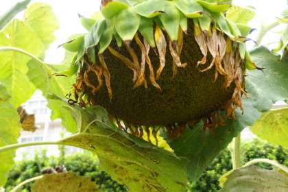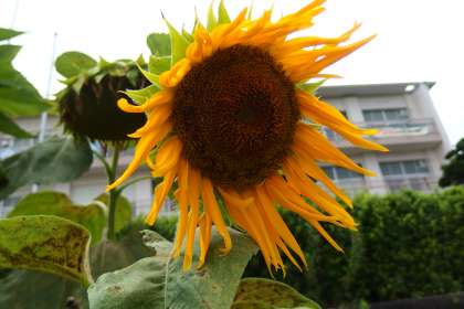 運動場のひまわりはこれが最後の一輪です。 タブレットで撮影しています。