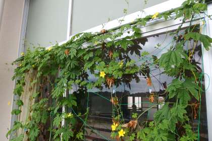 8月13日の東広瀬小学校(9) 公開日 2022/08/16 更新日 2022/08/16 お知らせ 4年生が栽培しているツルレイシ(ゴーヤ)です。 グリーンカーテンになりつつあります。 タブレットで撮影しています。