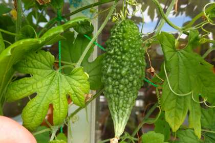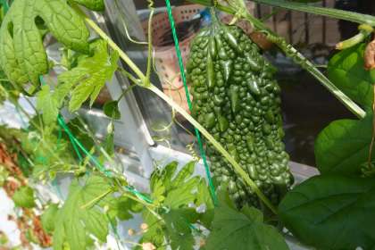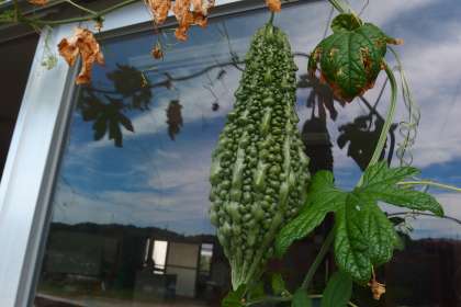 ゴーヤも大きく実っています。 タブレットで撮影しています。