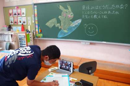 タブレットのアプリの Microsoft Teams を使ってオンライン出校日を行いました。