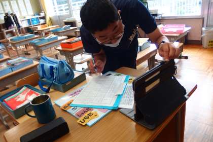 タブレット越しではありますが、子どもたちの様子を確認している2年生の担任の先生です。