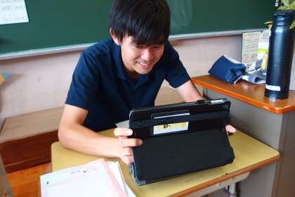タブレットのアプリの Microsoft Teams を使ってオンライン出校日を行いました。