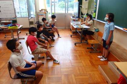 特別支援学級の朝の会の様子です。