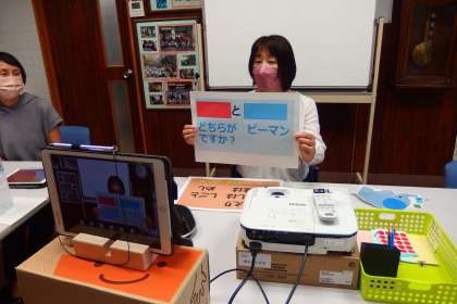 器用はたいへんに蒸し暑く、冷房のない体育館では熱中症の心配があるため、タブレットを利用したリモート形式で実施しました。