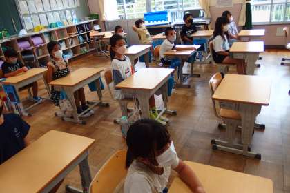 9月1日 夏休み後 全校集会 公開日 2022/09/01 更新日 2022/09/01 学校行事 リモート配信で実施した全校集会に各教室で参加している様子です。 タブレットからスクリーンに映しています。