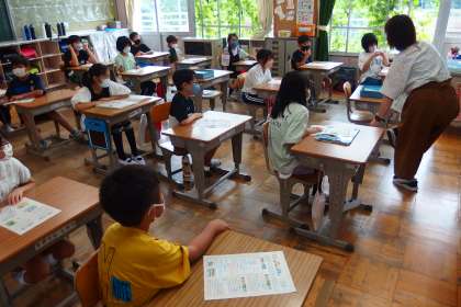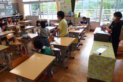 久しぶりの授業でした。 上から4年生、5年生、6年生の授業です。