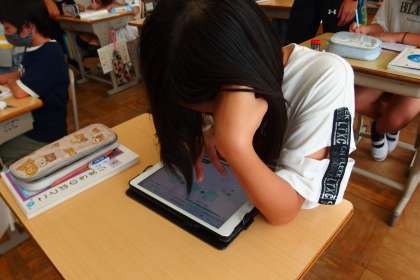 Qubena(デジタルドリル)で復習をしている6年生です。