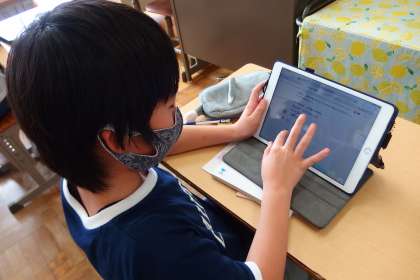 Qubena(デジタルドリル)で復習をしている6年生です。