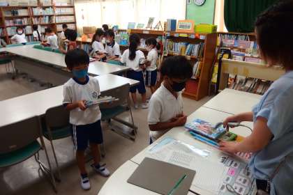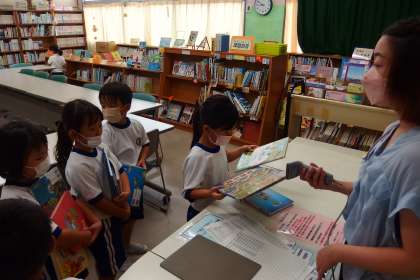 夏休み中に借りていた本を図書館に返しに来た1年生です。