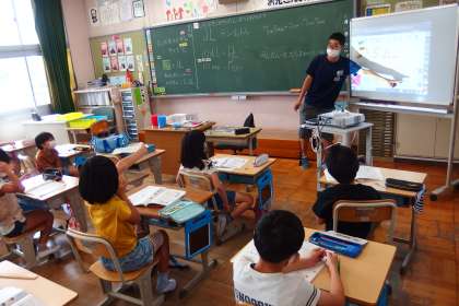 2年生の算数の授業です。 デジタル教科書を提示して授業を進めています。