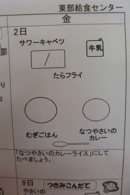 今日の給食のメニューです。