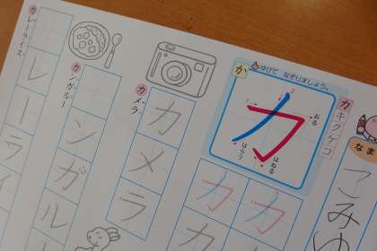 写真を撮りに行ったときは、「カレーライス」「カメラ」「カフェオレ」など『カ』を勉強していました。