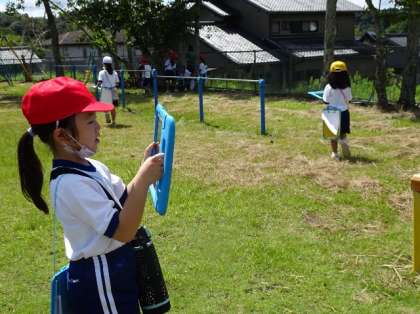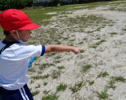 9月5日の東広瀬小学校(39) 公開日 2022/09/07 更新日 2022/09/07 活動の様子 タブレットを持って運動場に出て、1年生が虫探しをしている様子です。 運動場に出てすぐ、地面にいたバッタを見つける子どもの目のよさにびっくりでした。