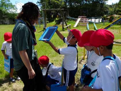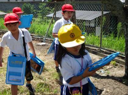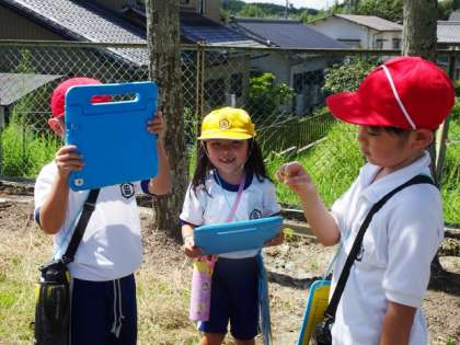 9月5日の東広瀬小学校(44) 公開日 2022/09/07 更新日 2022/09/07 活動の様子 タブレットを持って運動場に出て、1年生が虫探しをしている様子です。 友だちが持っている虫をアップで写す名カメラマンもいました。