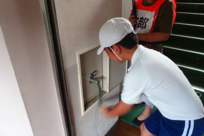 避難訓練のあと、防火シャッターを開けるのを手伝ってくれました。 ありがとうございます!