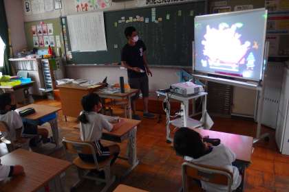 先生のタブレットからNHK for Schoolの動画を流して学習を進めていました。