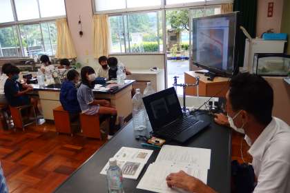 4年生の受けた出前授業、下水道講座です。 市役所の上下水道局の方に話をしていただきました。