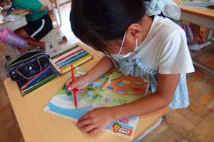 9月8日の東広瀬小学校(29) 公開日 2022/09/09 更新日 2022/09/09 活動の様子 3年生の外国語活動の授業です。 colors(色)を学習しました。 教科書に色鉛筆でrainbow(虹)を描いているところをタブレットで撮影しました。