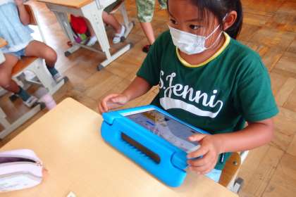colors(色)を学習しているところで、それぞれの色の動物、自然、ものなどの英語での表現をタブレットで調べました。