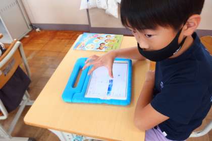 colors(色)を学習しているところで、それぞれの色の動物、自然、ものなどの英語での表現をタブレットで調べました。