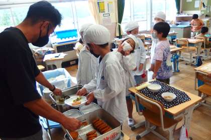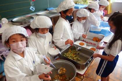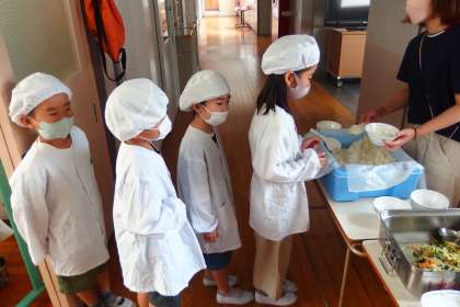 給食の配膳の様子です。