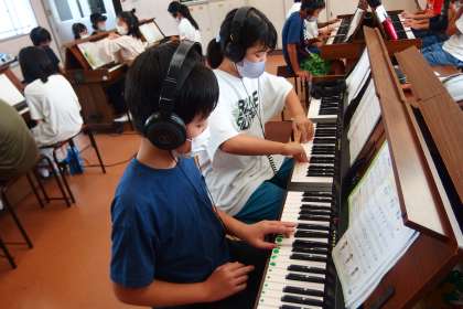9月9日の東広瀬小学校(76) 公開日 2022/09/11 更新日 2022/09/11 活動の様子 5年生の音楽の授業の様子です。 ヘッドフォンを使って、各自のペースで、個別に学習を進めています。 タブレットで撮影しています。