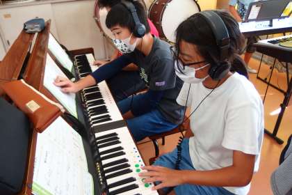ヘッドフォンを使って、各自のペースで、個別に学習を進めています。
