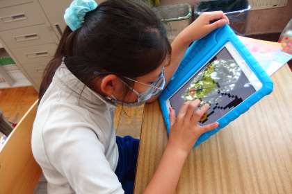 タブレットを使って復習をしている4年生です。