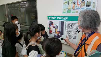 エコットの担当の方がごみ焼却の方法などを説明してくれています。
