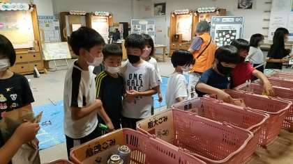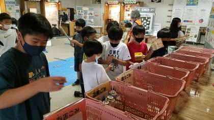 「矢作川」で釣り上げたごみを正しく分別していきます。