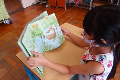 静かに読書にいそしむ1年生です。 タブレットで撮影しています。