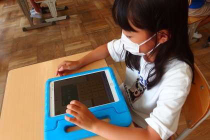 タブレットのデジタルドリルを使って復習をする2年生です。