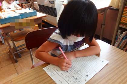 1年生の国語の授業です。 作文に挑戦中です。 タブレットで撮影しています。