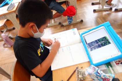 9月15日の東広瀬小学校(48) 公開日 2022/09/19 更新日 2022/09/19 活動の様子 3年生の理科の授業です。 畑のヒマワリから収穫した種や夏の花、初秋の花を観察したあと、タブレットで撮影した画像を確認しながら、観察レポートを作成しているところです。