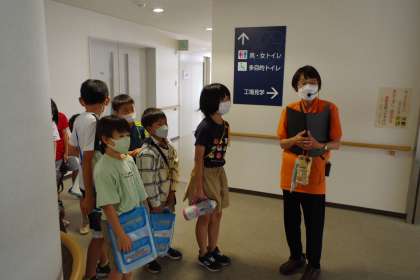 一般の方は普段は立ち入ることのできないクリーンセンター(焼却工場)内に入っていくところです。