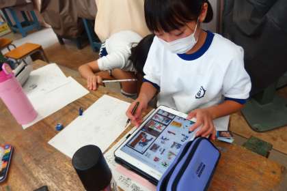 9月20日の東広瀬小学校(14) 公開日 2022/09/23 更新日 2022/09/23 活動の様子 5年生の図工の授業です。 ポスターのデザインを考えるためにタブレットで調べて参考にしていました。