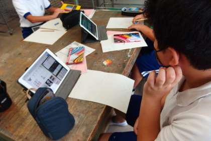 9月20日の東広瀬小学校(18) 公開日 2022/09/23 更新日 2022/09/23 活動の様子 5年生の図工の授業です。 ポスターのデザインを考えるためにタブレットで調べて参考にしていました。