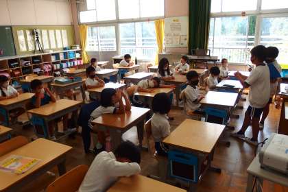2年生の朝の会の様子です。 タブレットで撮影しています。