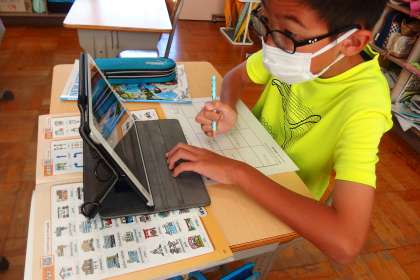 9月21日の東広瀬小学校(10) 公開日 2022/09/23 更新日 2022/09/23 活動の様子 6年生の英語の授業です。 タブレットを見ながら、ワークシートに英単語を書き写しています。 先生が支持したわけではなく、自分たちでやりやすい方法を工夫しています。