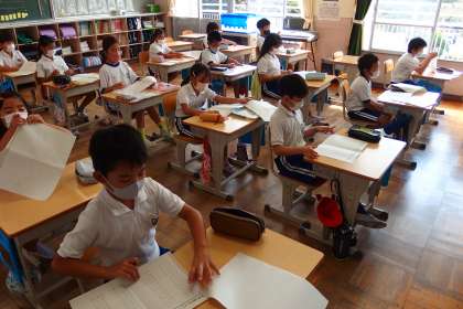 3年生のわかばタイムの様子です。 国語の復習をしていました。 タブレットで撮影しています。