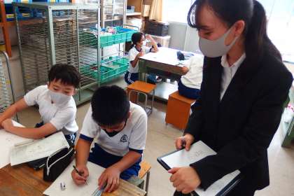9月27日の東広瀬小学校(19) 公開日 2022/09/28 更新日 2022/09/28 We Love 東広瀬(地域学校共働本部) 5年生の図工の授業です。 将来教職を志している大学生が、学校体験活動のために本校を訪問していますが、ポスター制作をしている5年生に、専門知識を生かしてアドバイスをしてくれていました。 この写真はタブレットで撮影しています。