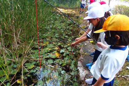 9月27日 1年生ザリガニ釣り 公開日 2022/09/28 更新日 2022/09/28 活動の様子 1年生のザリガニ釣りの様子です。 ひろせ池とメダカ池に分かれて捕まえます。 この写真はデジタルカメラで撮影しています。