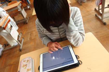 9月27日の東広瀬小学校(40) 公開日 2022/09/28 更新日 2022/09/28 活動の様子 6年生の英語の授業です。 タブレットの発表ノート機能を使って、英語のメッセージカードを作成しています。