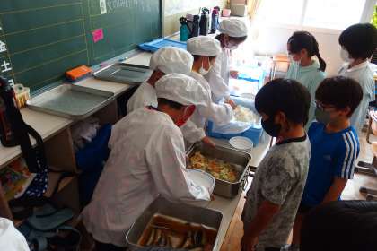 給食の配膳の様子です。