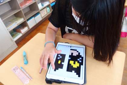 タブレットで復習している6年生です。