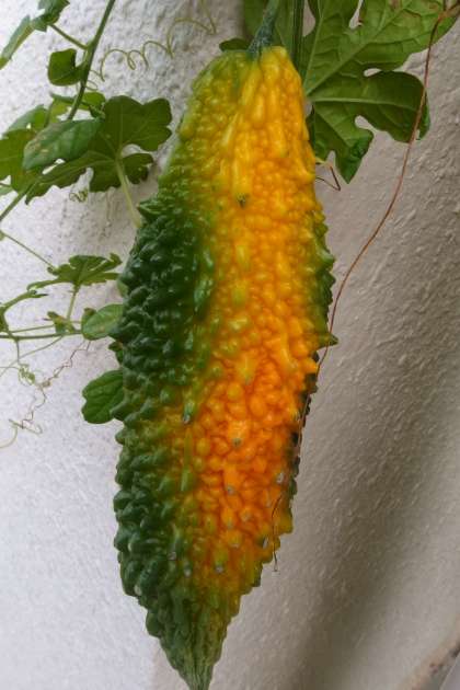 売れ過ぎたゴーヤからは種を採取します。 この写真はタブレットで撮影しています。