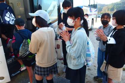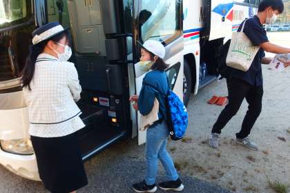 バズガイドさんに消毒をしてもらい、バスに乗り込みます。
